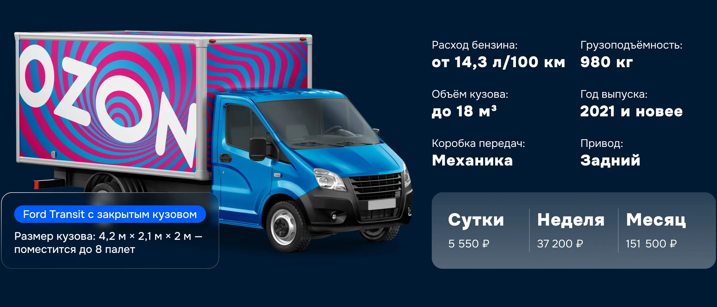 Наш опыт аренды Ford Transit на 2 дня положительный. Использовали для развозки заказов оптовикам и отгрузок на маркетплейсы. Импортируем напитки и масла из Австралии/Вьетнама — заказов много, своя машина подвела. Выбрали Ozon Напрокат.
